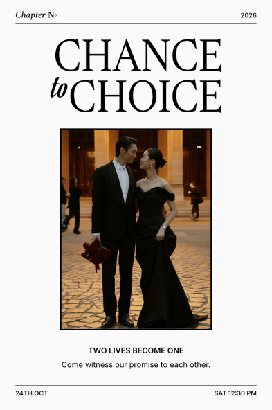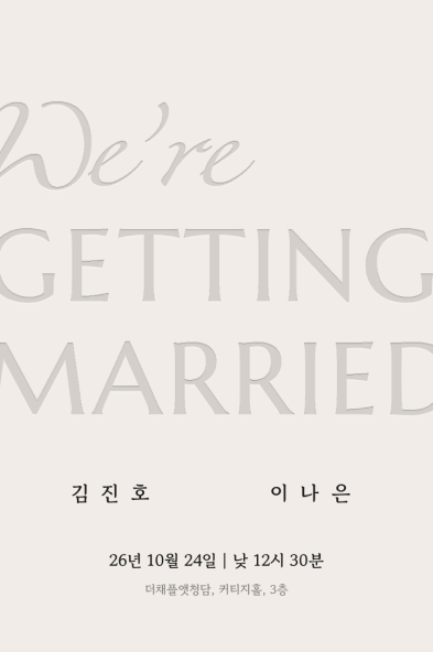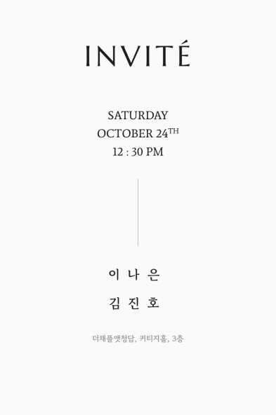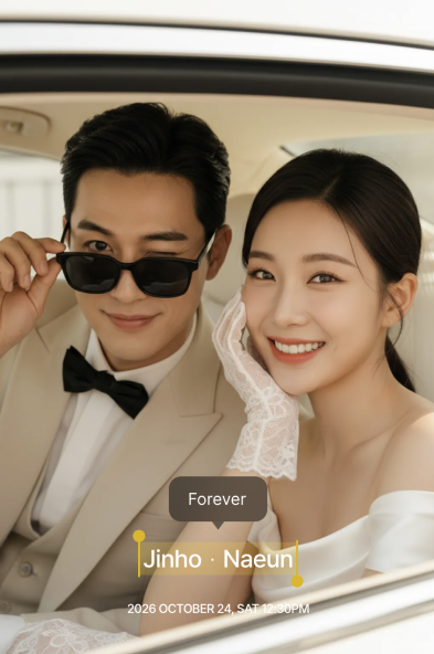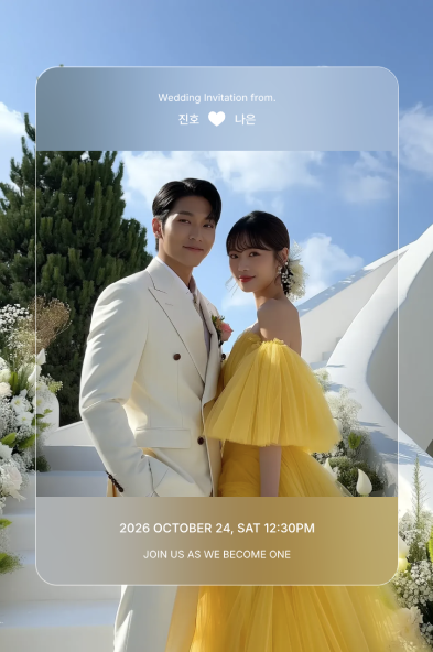 오프닝 애니메이션청첩장이 열리는 순간, 감각적인 연출로 특별한 첫인상을 남길 수 있어요.·오프닝 타입 A,B 제공·각 타입별 톤 색상 변경 옵션 제공·ON/OFF 가능