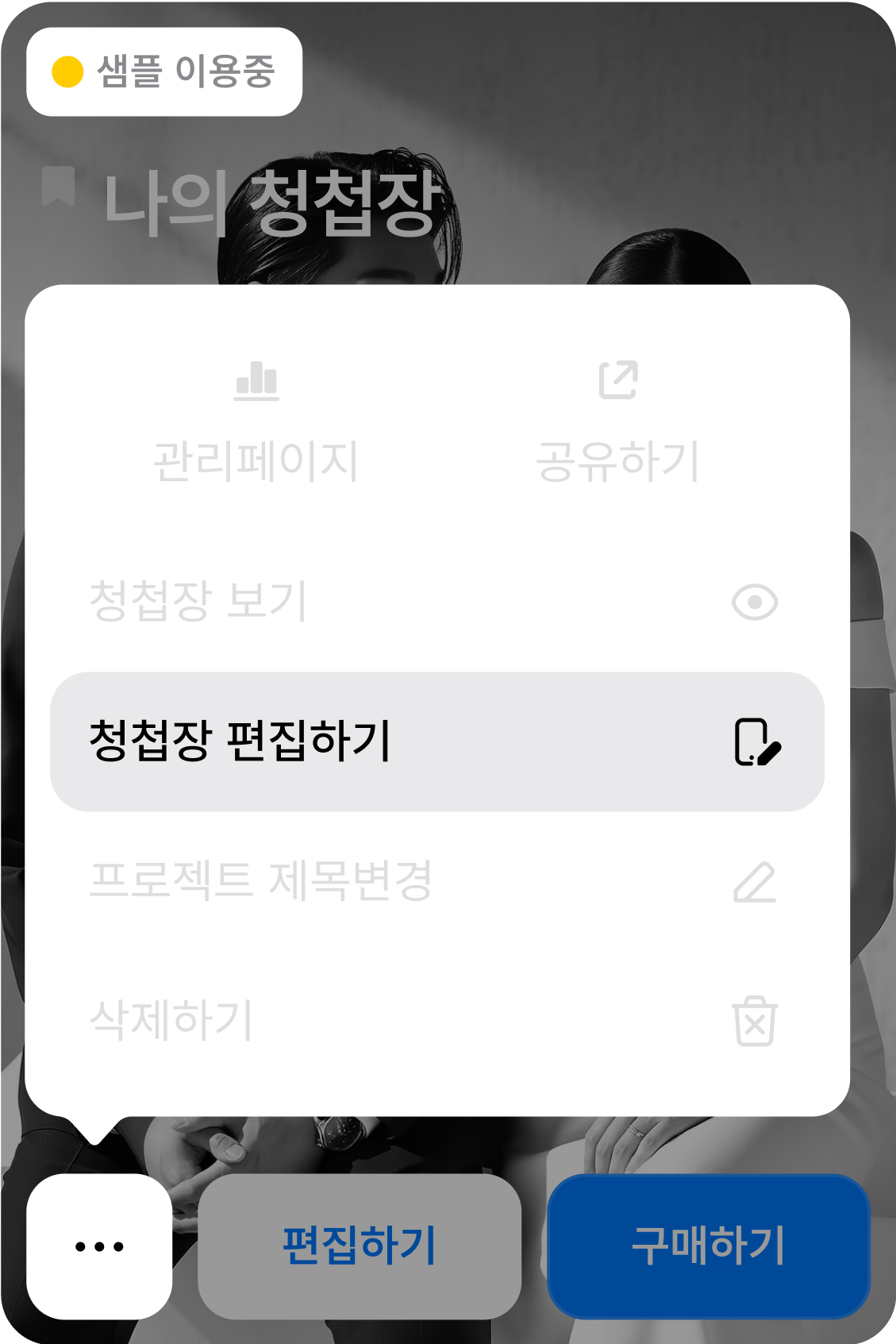 카톡 초대장 설정카톡에서 보이는 카드형 초대장을 편집할 수 있어요.·초대장 썸네일 변경·제목·설명 편집 가능·버튼 표시 및 기능 설정 가능