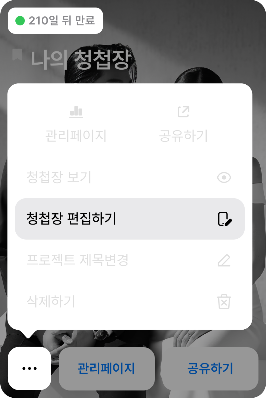 커스텀 초대장 설정모바일도 정성스럽게, 오직 한 명을 위한 메세지가 담긴 초대장·초대장 제목·설명 커스텀 발송 지원