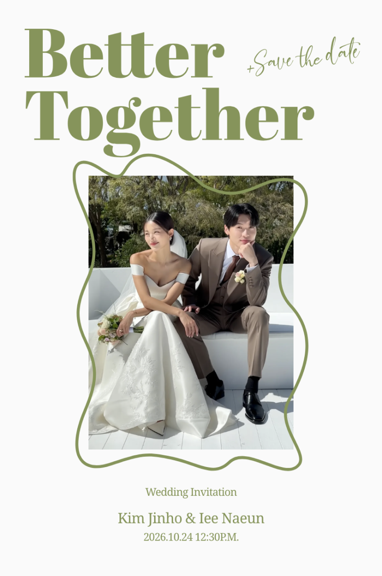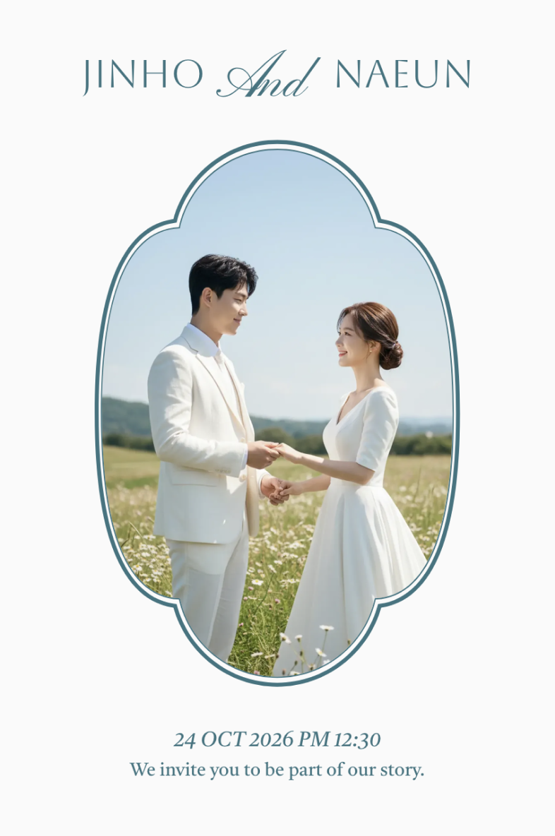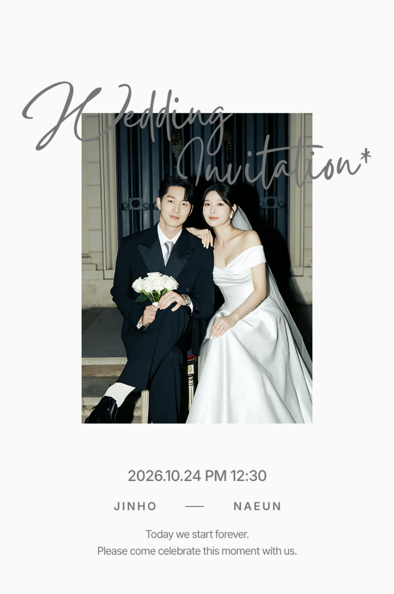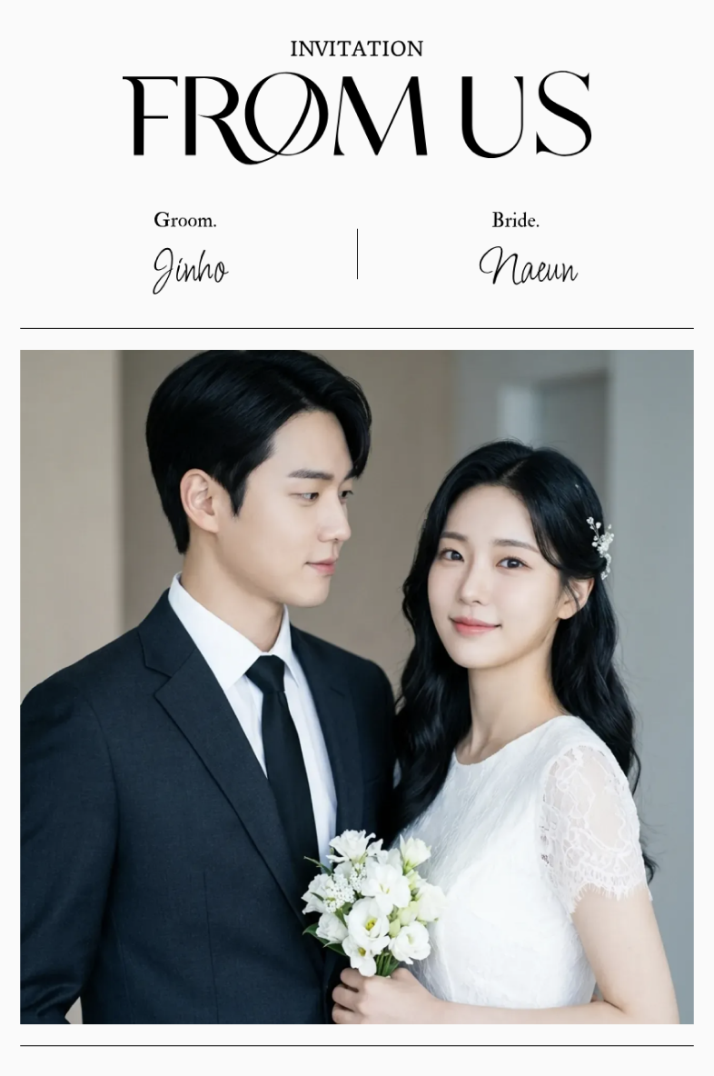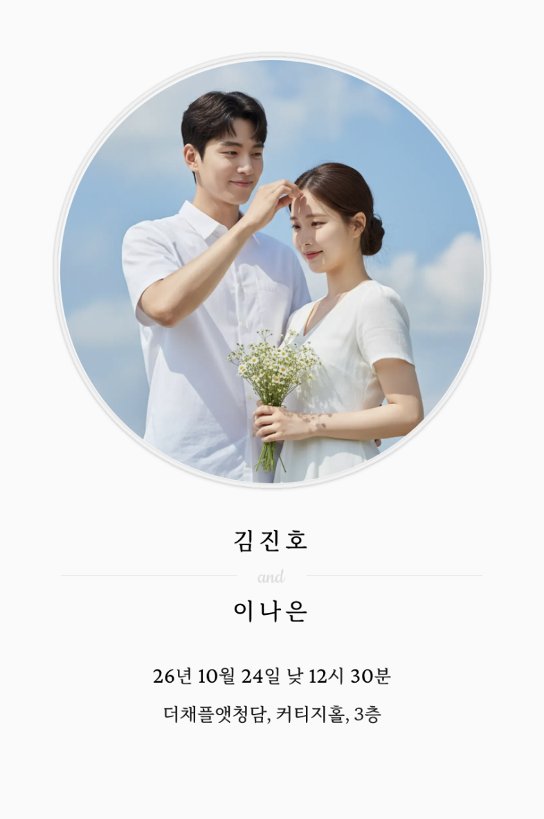 오프닝 애니메이션청첩장이 열리는 순간, 감각적인 연출로 특별한 첫인상을 남길 수 있어요.·오프닝 타입 A,B 제공·각 타입별 톤 색상 변경 옵션 제공·ON/OFF 가능