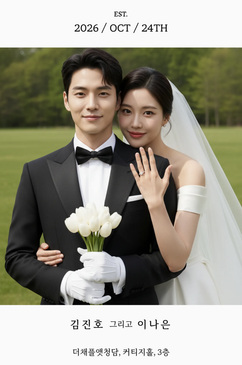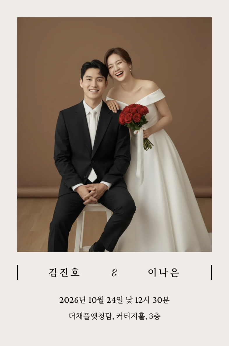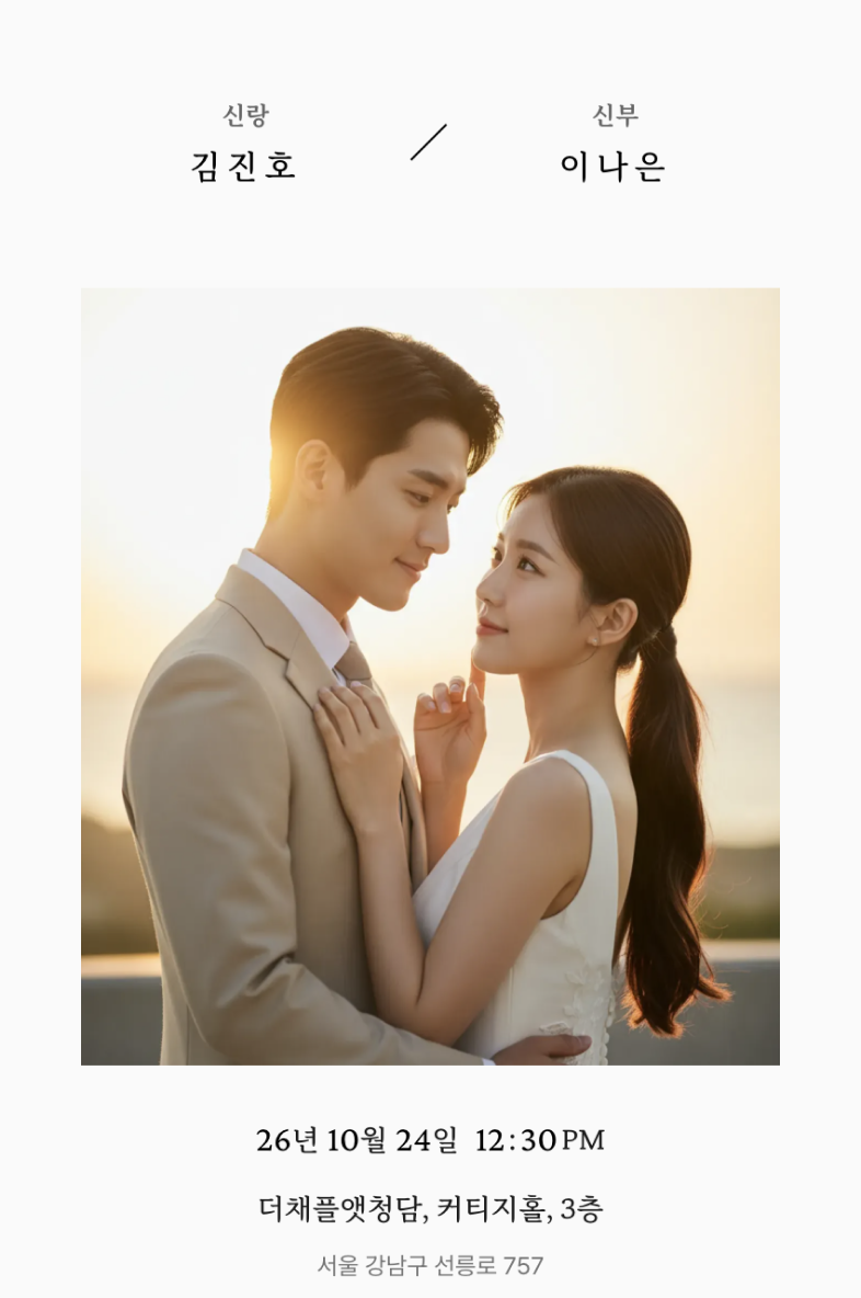 청첩 이미지간단한 미션 수행하면 아래 디자인을 전부 무료로 드려요.·인스타그램 게시용 디자인·카카오톡 프로필 배경용 디자인·이미지 청첩장·모바일청첩장 전체화면